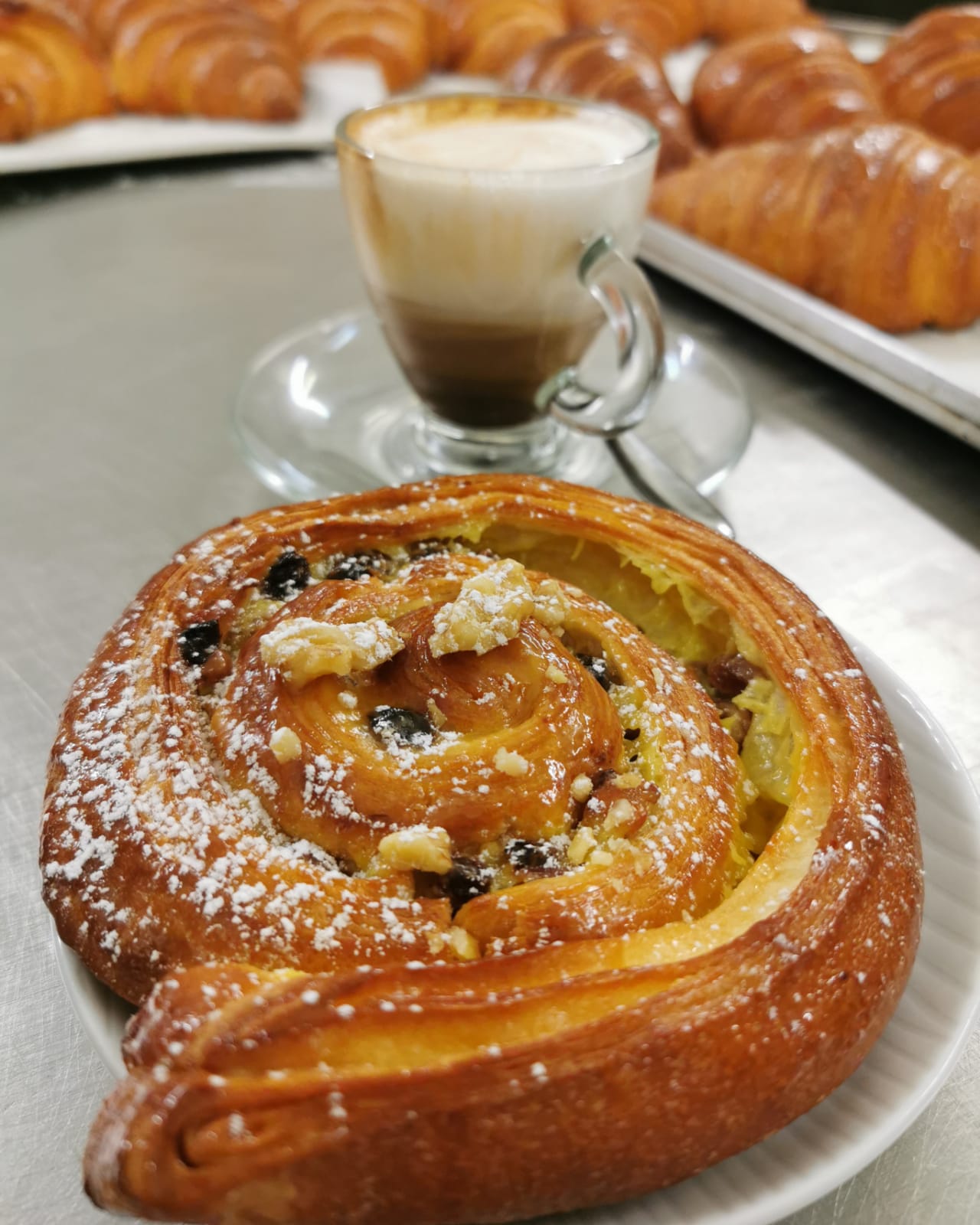 Caffè, cappuccino, latte macchiato, cioccolata, spremute varie, tè e tisane e anche succhi di frutta sono l'ideale accompagnamento per tutti nostri cornetti farciti con i ripieni più diversi: crema, cioccolato, cioccolato bianco, panna, confetture, marmellate di frutta, crema al pistacchio e ancora tanto altro. Oppure vi potete deliziare con i cannellini, anche qui con ripieni vari, le maddalene, le sfoglie semplici e con l’uvetta, le millefoglie, le veneziane, le girelle con crema o uvetta e tante altre prelibatezze.